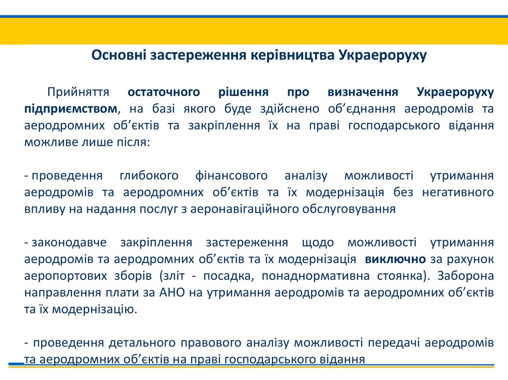 Основні застереження керівництва УкраерорухуПрийняття остаточного рішення про визначення Украероруху