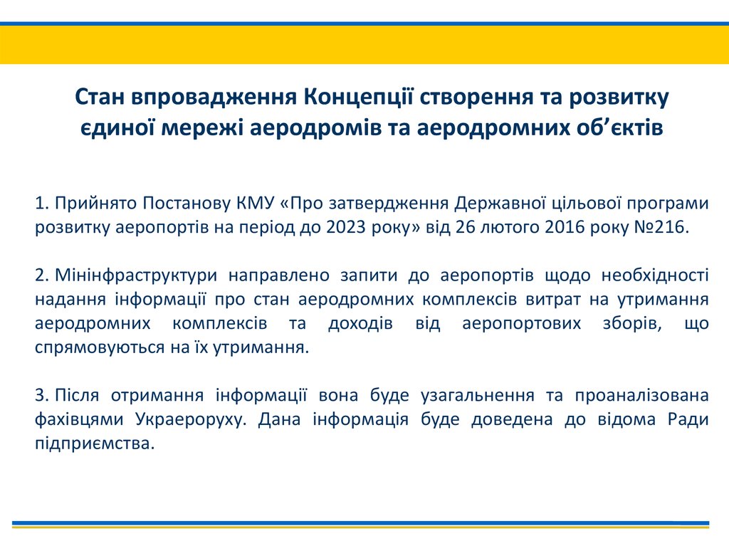 розвитку аеропортів на період до 2023 року» від 26 лютого 2016 року №216.