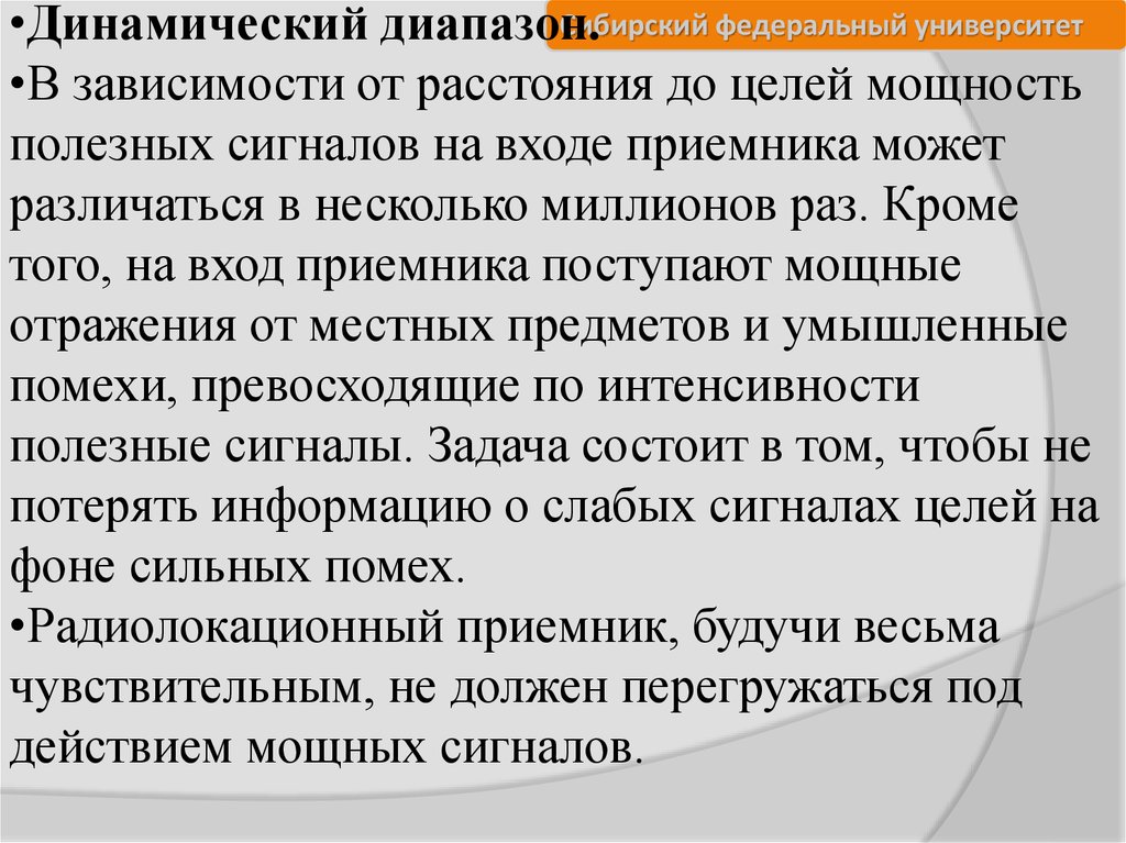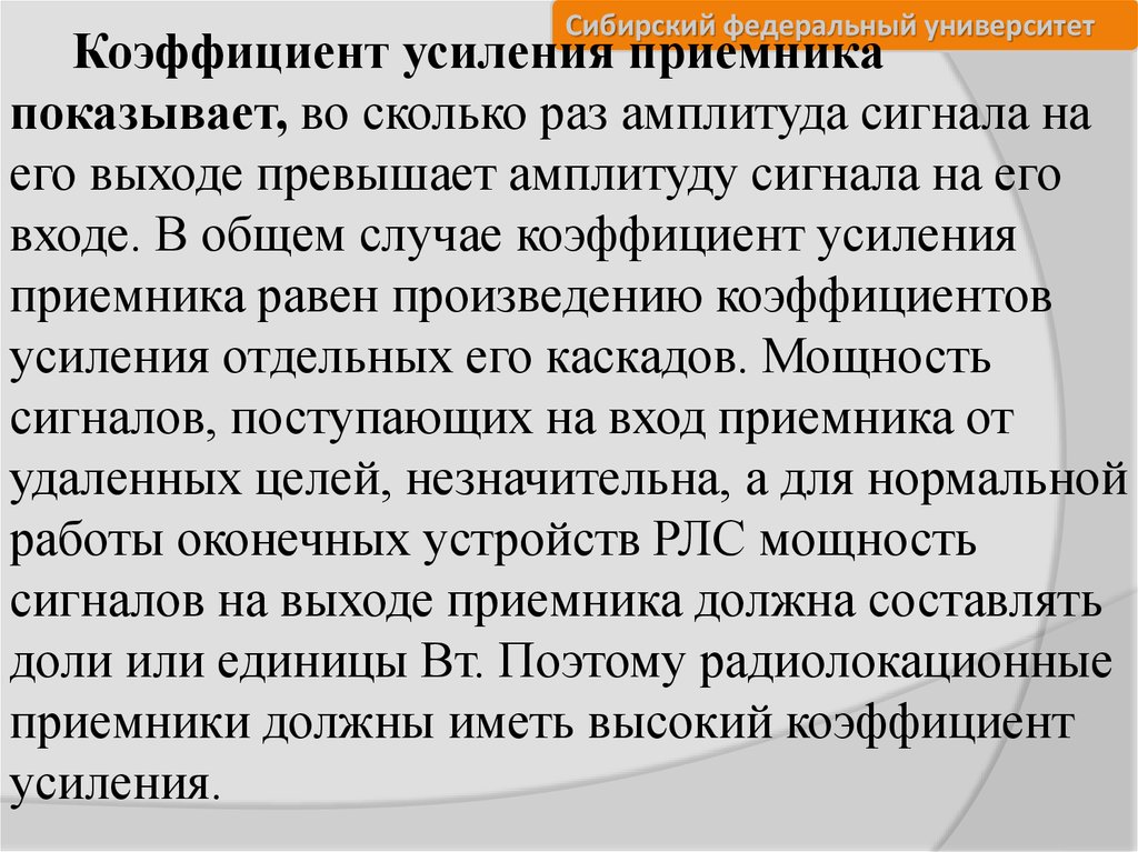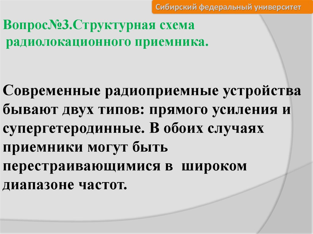 Сибирский федеральный университетПриемное устройство современной РЛС(модернизация РЛС П-18)