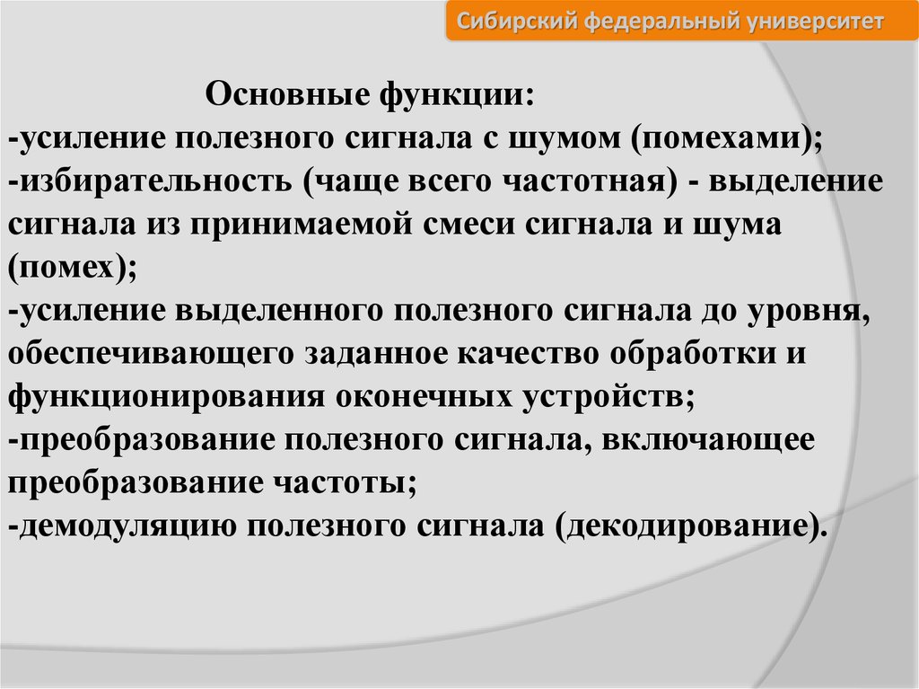 Сибирский федеральный университетОсновные функции: