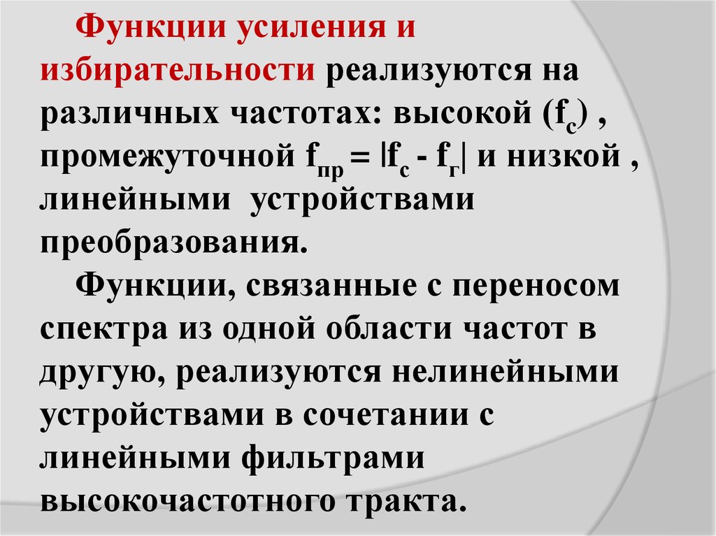 Функции усиления иизбирательности реализуются на