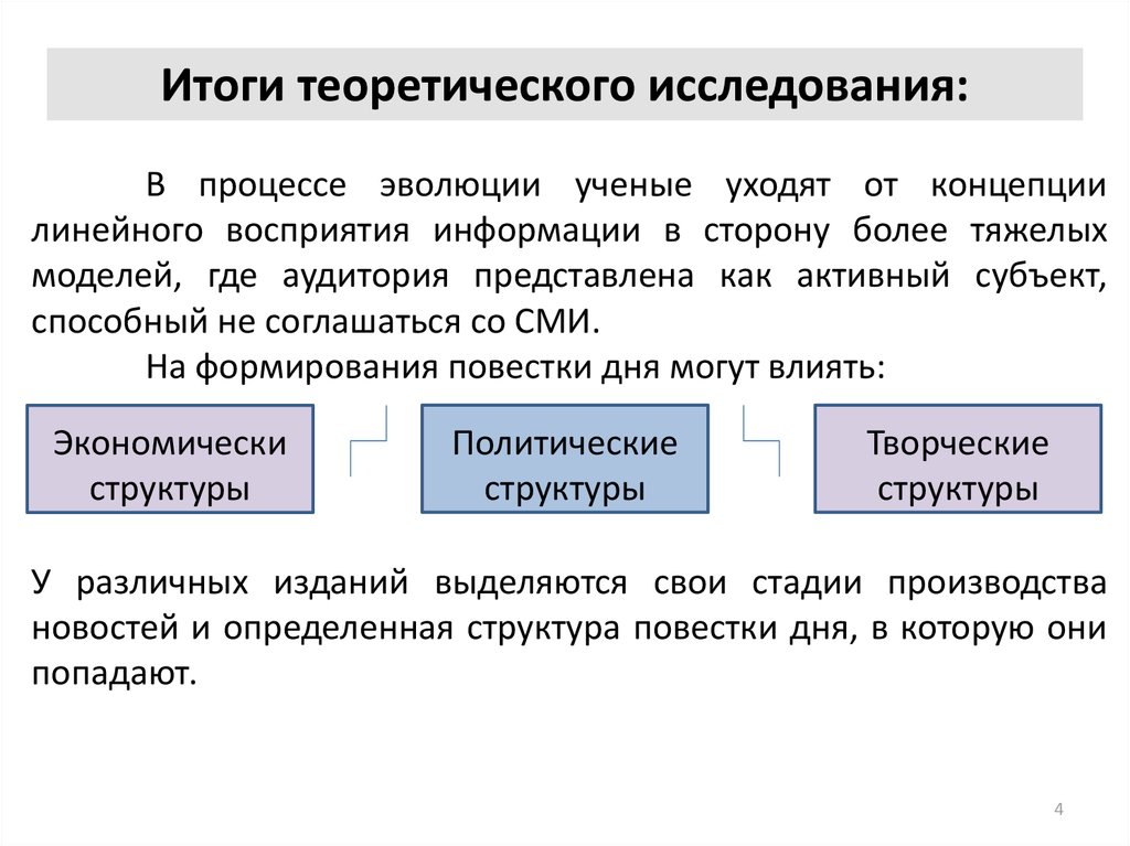 Итоги теоретического исследования:В процессе эволюции ученые уходят от концепции