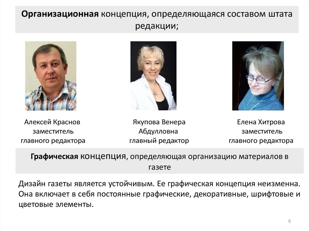 Организационная концепция, определяющаяся составом штатаредакции;