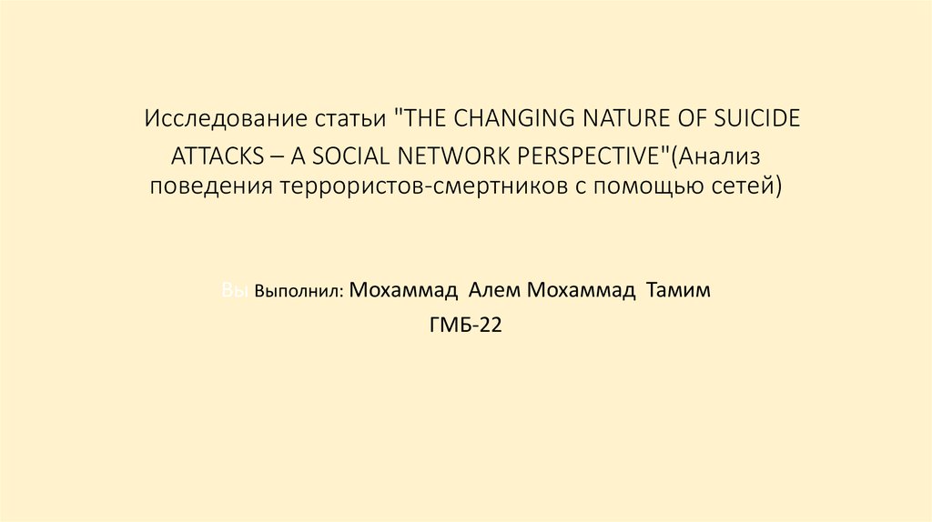 Исследование статьи "THE CHANGING NATURE OF SUICIDEATTACKS – A SOCIAL NETWORK PERSPECTIVE"(Анализ