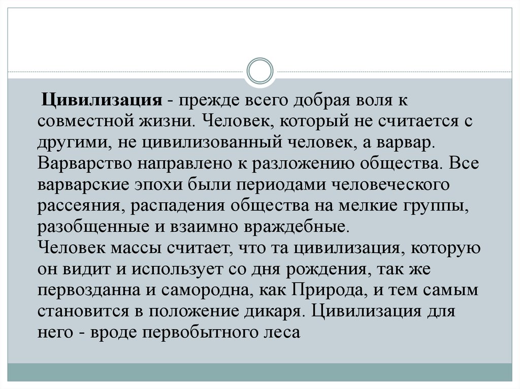Цивилизация - прежде всего добрая воля ксовместной жизни. Человек, который не считается с