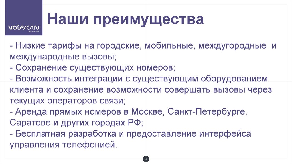 Наши преимущества- Низкие тарифы на городские, мобильные, междугородные и