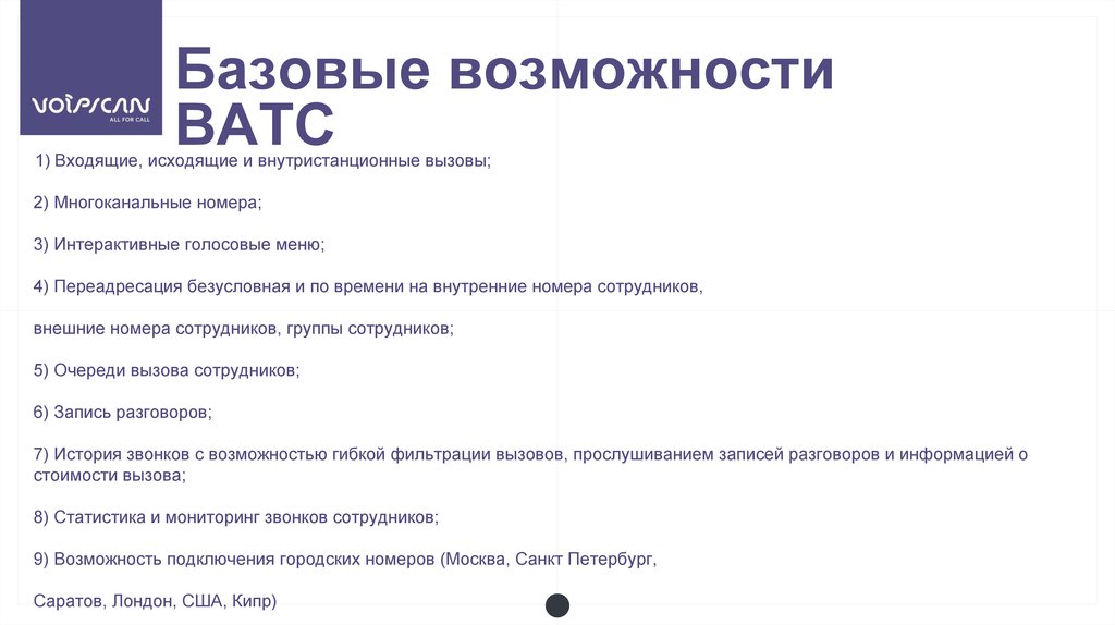 9) Возможность подключения городских номеров (Москва, Санкт Петербург,