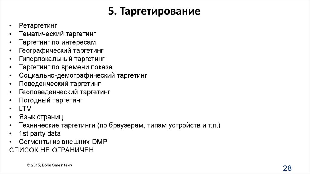 Возможности таргетирования