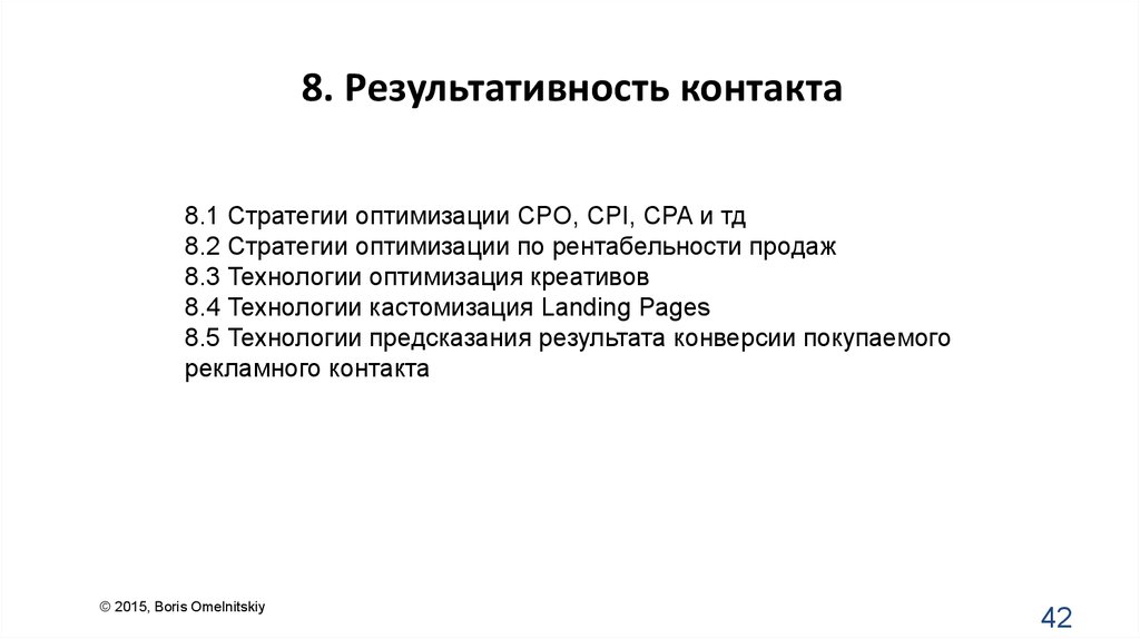 8. Результативность контакта8.1 Стратегии оптимизации CPO, CPI, CPA и тд