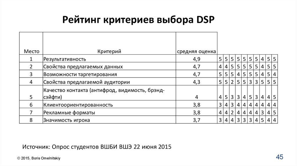 Рейтинг критериев выбора DSPМесто