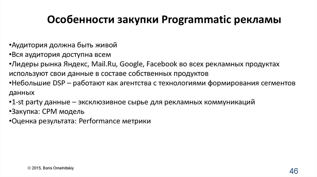 Особенности закупки Programmatic рекламы•Аудитория должна быть живой