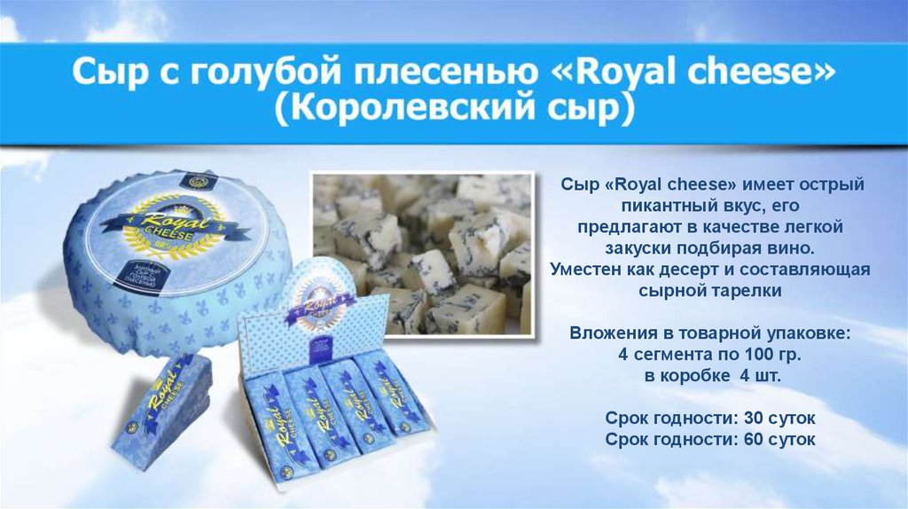 Сыр «Royal cheese» имеет острыйпикантный вкус, его