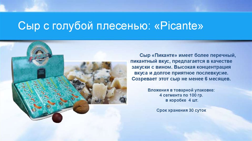Сыр с голубой плесенью: «Picante»Сыр «Пиканте» имеет более перечный,