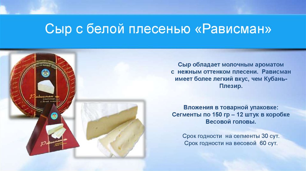 Сыр с белой плесенью «Рависман»Сыр обладает молочным ароматом