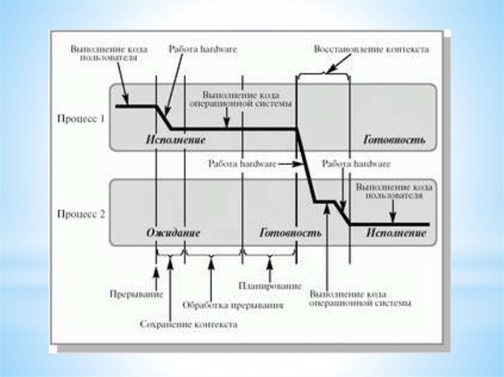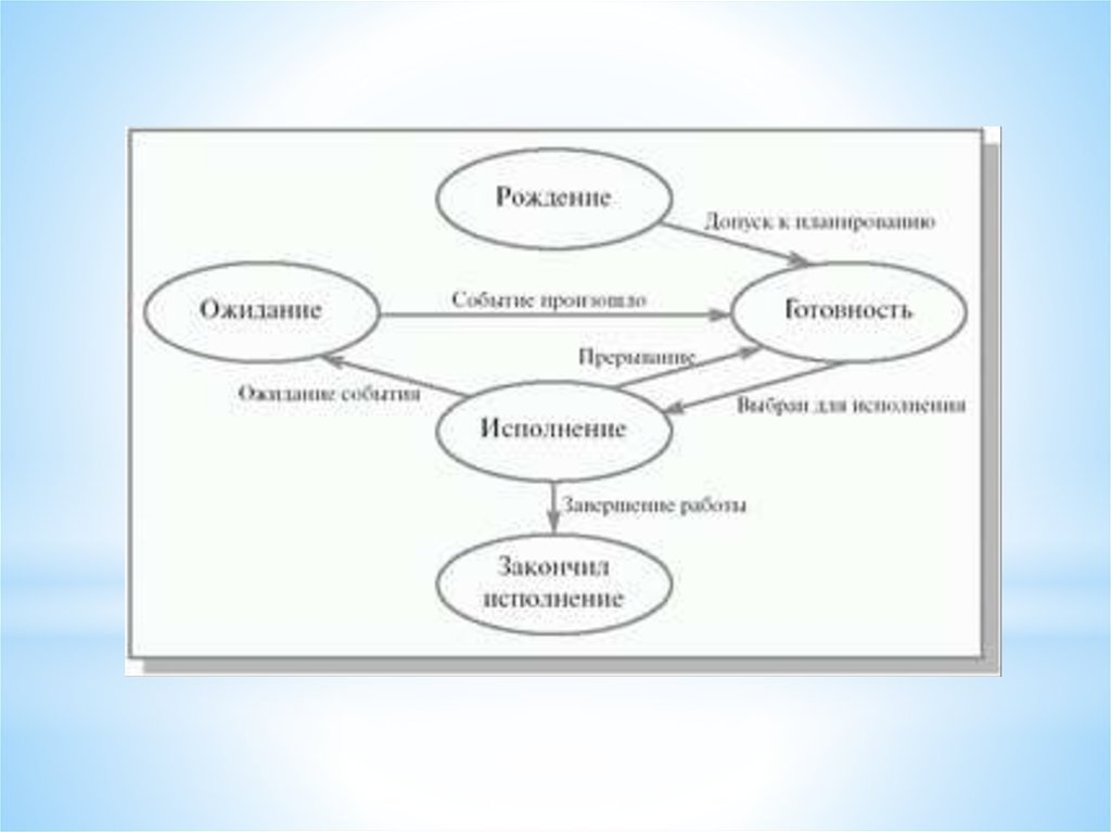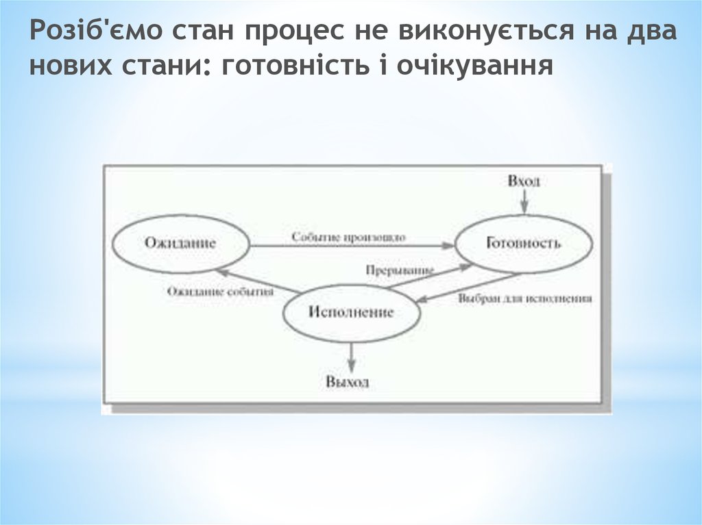 Розіб'ємо стан процес не виконується на дванових стани: готовність і очікування