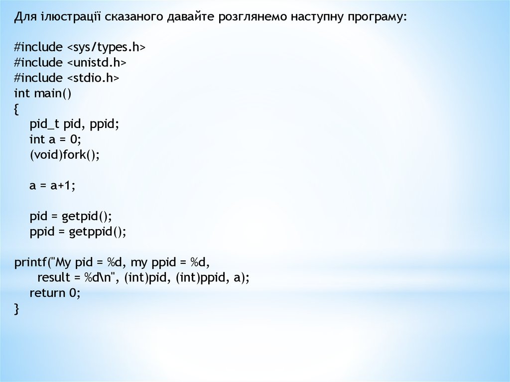 Для ілюстрації сказаного давайте розглянемо наступну програму:#include <sys/types.h>