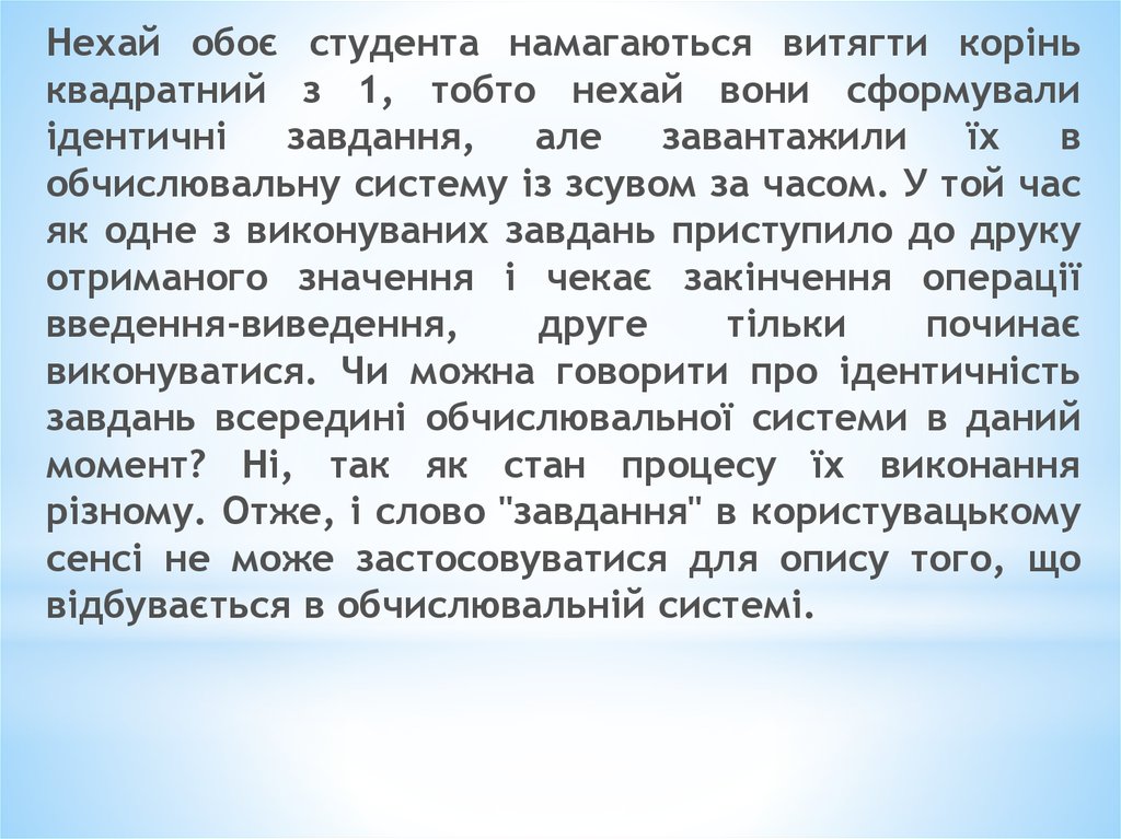 На однопроцесорній комп'ютерній системі вкожен момент часу може виконуватися