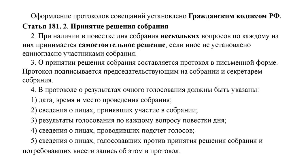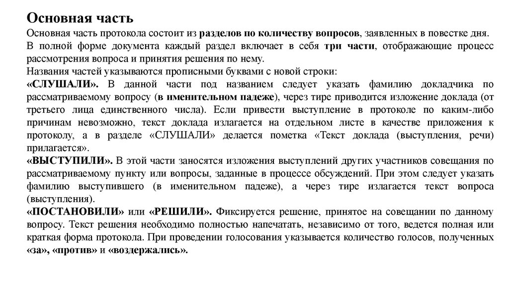 Основная частьОсновная часть протокола состоит из разделов по количеству вопросов, заявленных в повестке дня.