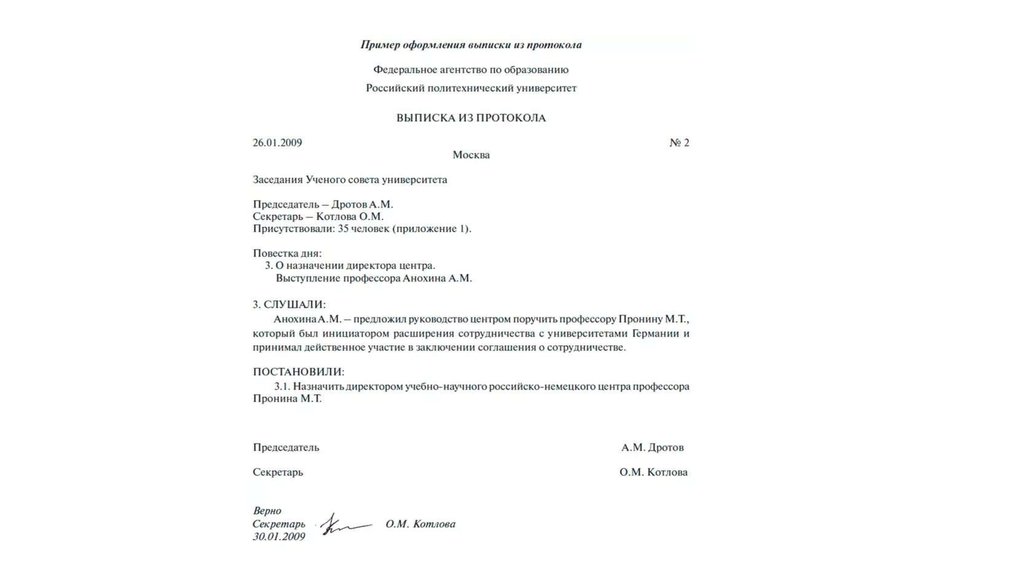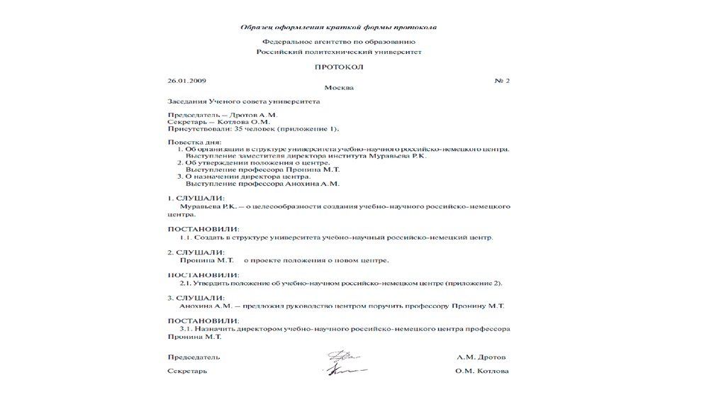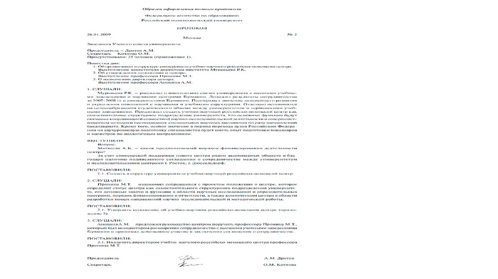 протоколу, а в разделе «СЛУШАЛИ» делается пометка «Текст доклада (выступления, речи)