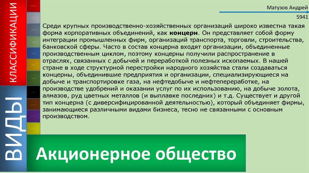 форма корпоративных объединений, как концерн. Он представляет собой форму