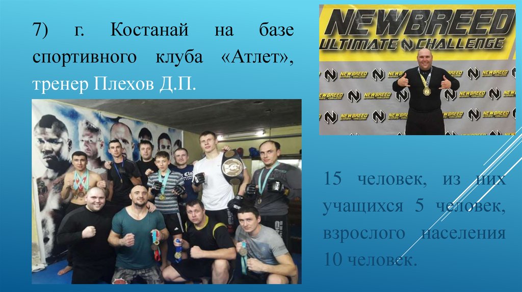 7) г. Костанай на базеспортивного клуба «Атлет»,
