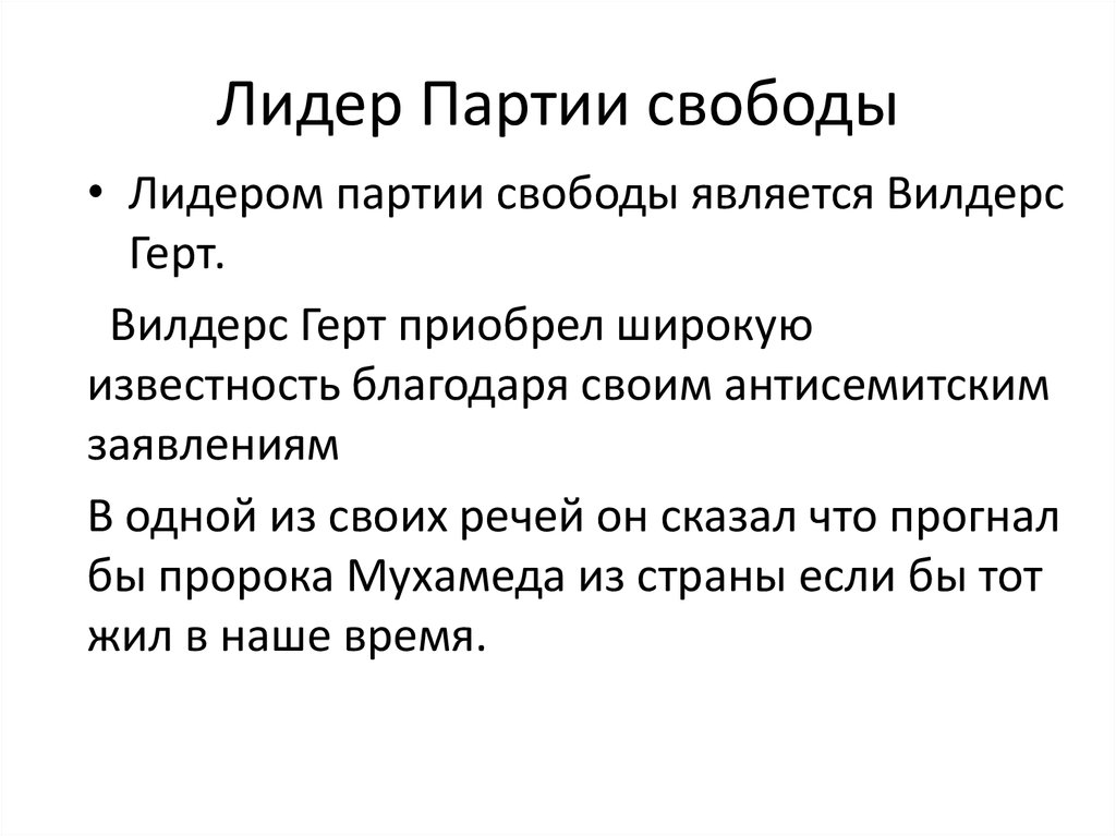 Лидер Партии свободы• Лидером партии свободы является Вилдерс