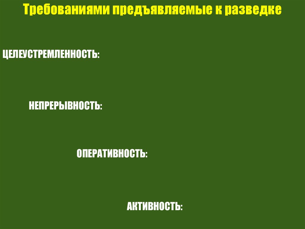Требованиями предъявляемые к разведкеЦЕЛЕУСТРЕМЛЕННОСТЬ: