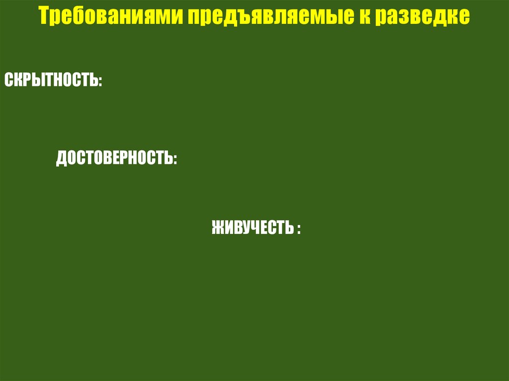 Требованиями предъявляемые к разведкеСКРЫТНОСТЬ: