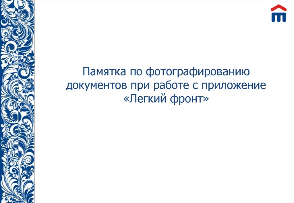 Памятка по фотографированию документов при работе с приложением «Легкий фронт»