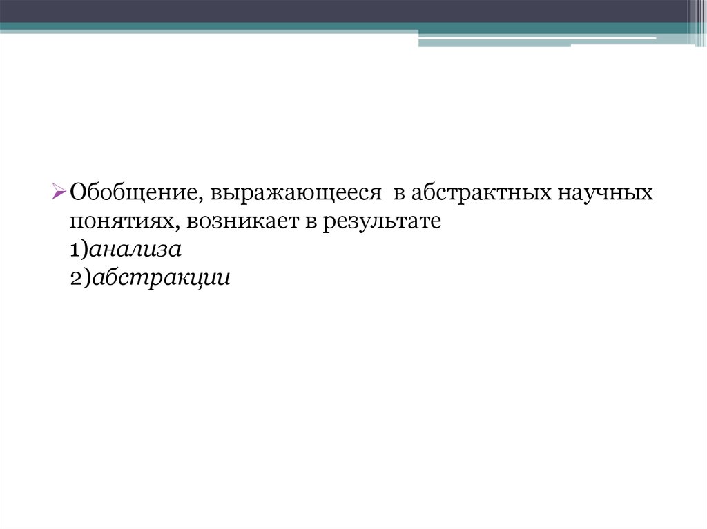 Обобщение, выражающееся в абстрактных научныхпонятиях, возникает в результате