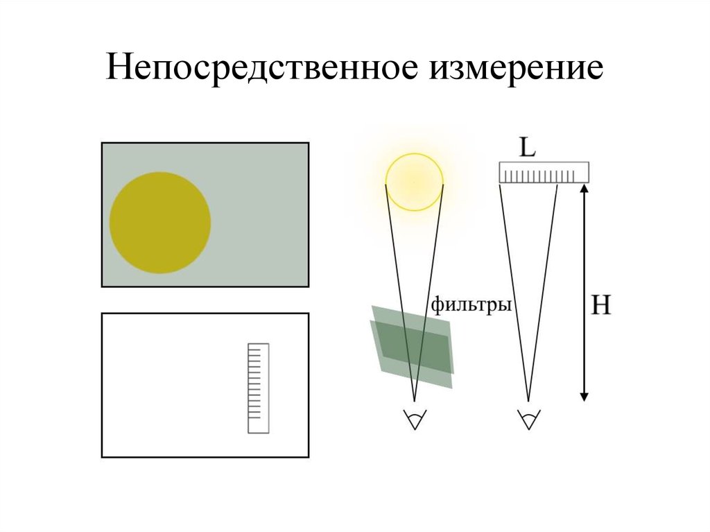 Непосредственное измерениеИзмеренный угловой размер Солнца составил