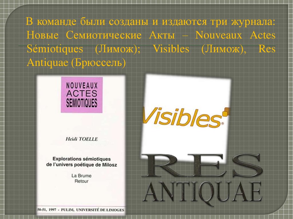 В команде были созданы и издаются три журнала:Новые Семиотические Акты – Nouveaux Actes