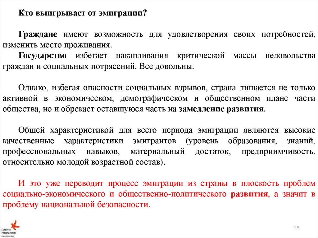 И это уже переводит процесс эмиграции из страны в плоскость проблем