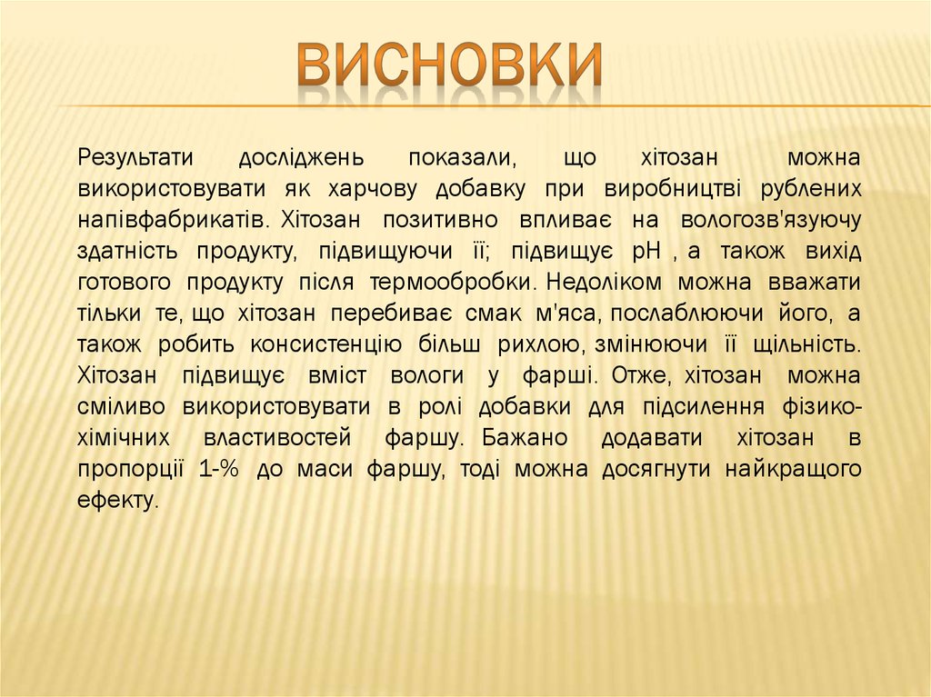 Отже, дослідження показало, що хітозан позитивно впливає на ВЗЗ,