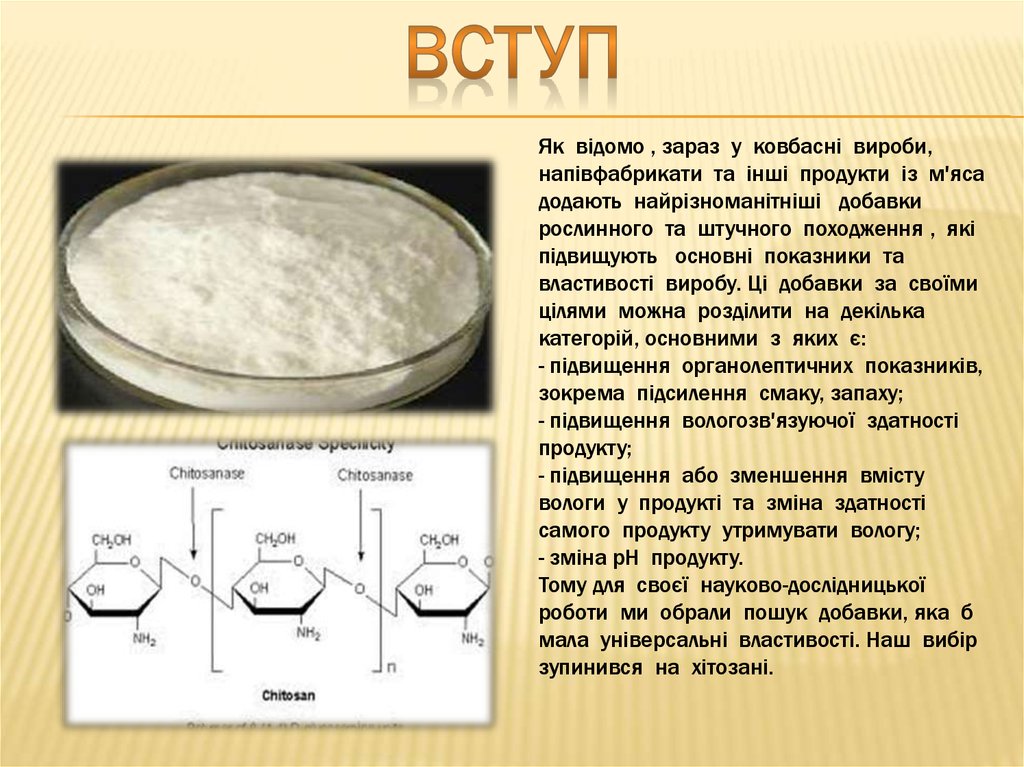 сміливо використовувати в ролі добавки для підсилення фізикохімічних властивостей фаршу. Бажано додавати хітозан в