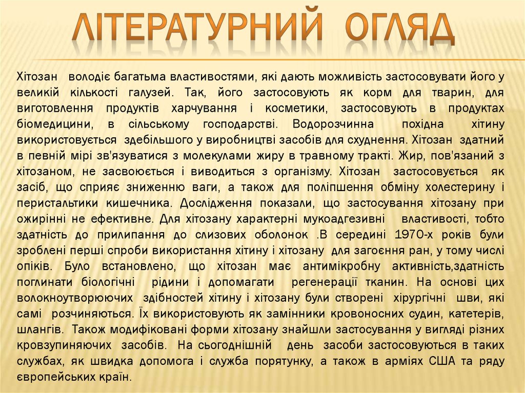 опіків. Було встановлено, що хітозан має антимікробну активність,здатність