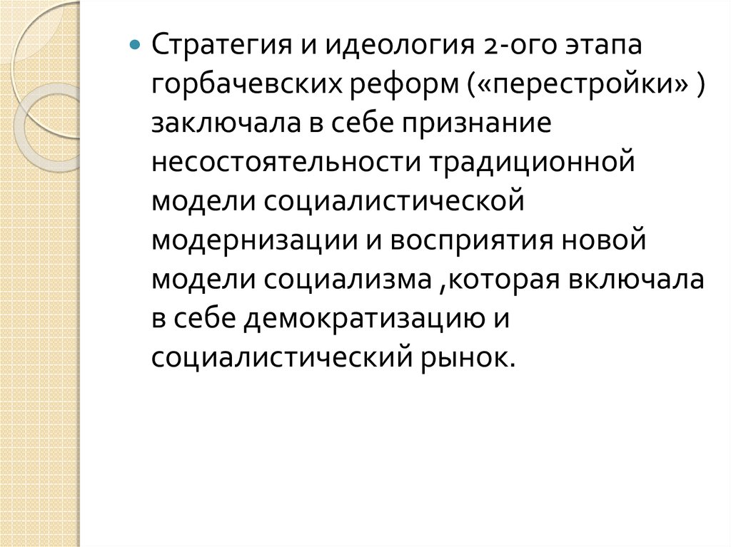 Стратегия и идеология 2-ого этапагорбачевских реформ («перестройки» )