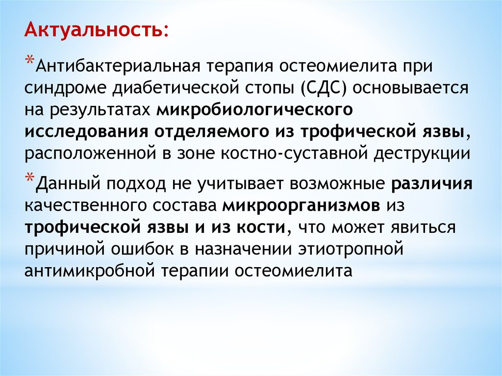Актуальность:*Антибактериальная терапия остеомиелита при