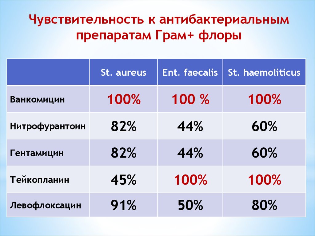 Чувствительность к антибактериальнымпрепаратам Грам+ флоры