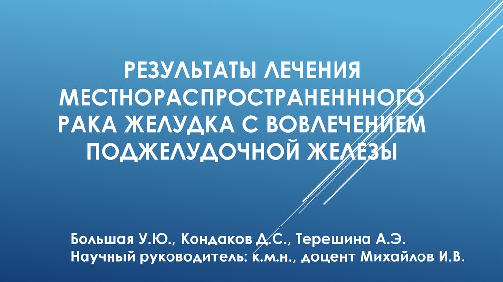 Результаты лечения местнораспространеннного рака желудка с вовлечением поджелудочной железы