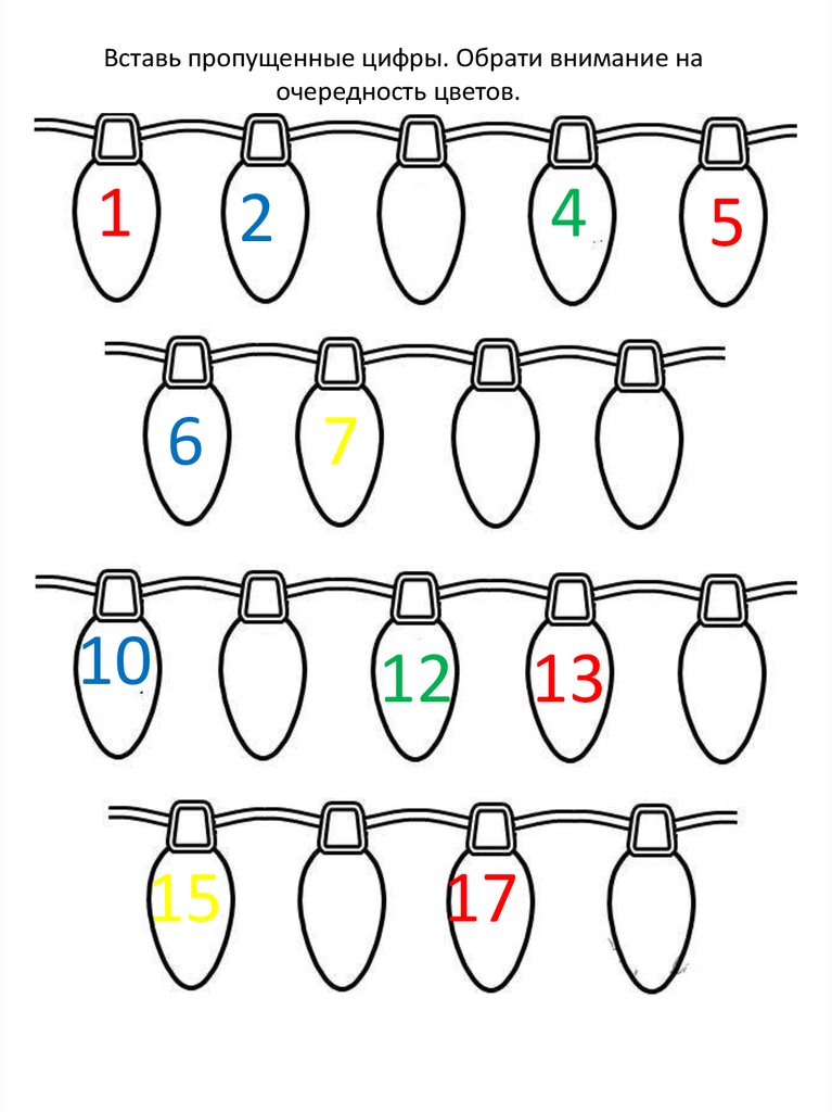 Вставь пропущенные цифры. Обрати внимание наочередность цветов.