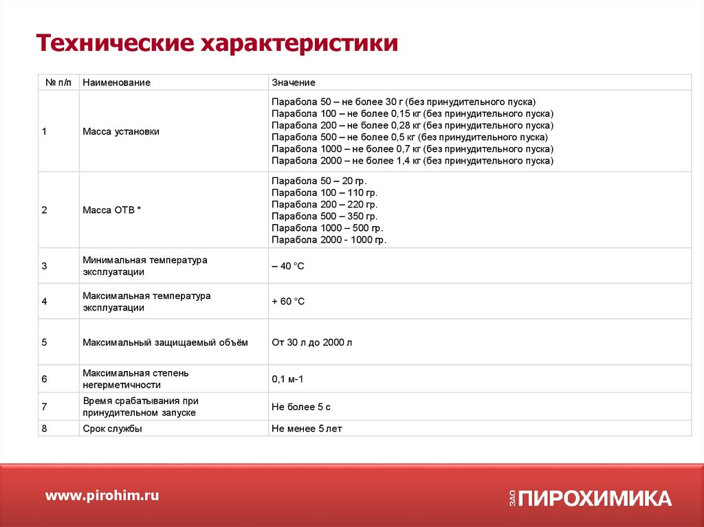 Парабола 200 – не более 0,28 кг (без принудительного пуска)