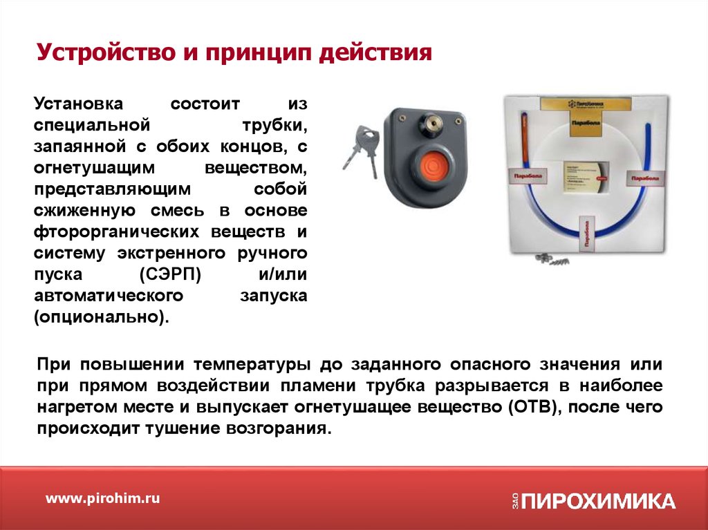 нагретом месте и выпускает огнетушащее вещество (ОТВ), после чего