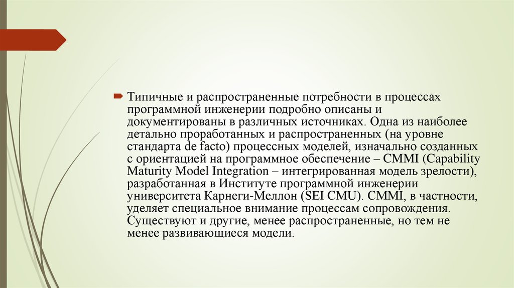 Типичные и распространенные потребности в процессахпрограммной инженерии подробно описаны и