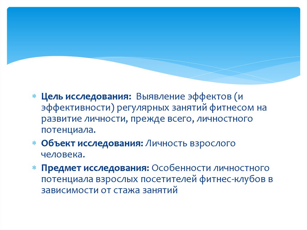 Цель исследования: Выявление эффектов (иэффективности) регулярных занятий фитнесом на