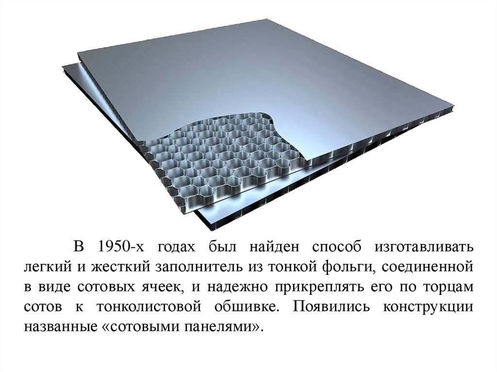 В 1950-х годах был найден способ изготавливатьлегкий и жесткий заполнитель из тонкой фольги, соединенной