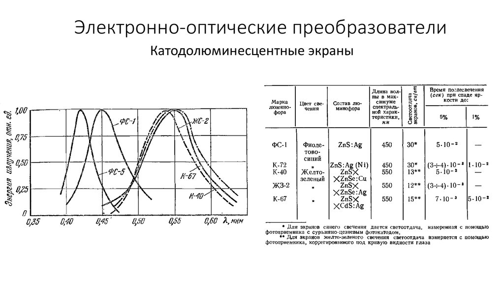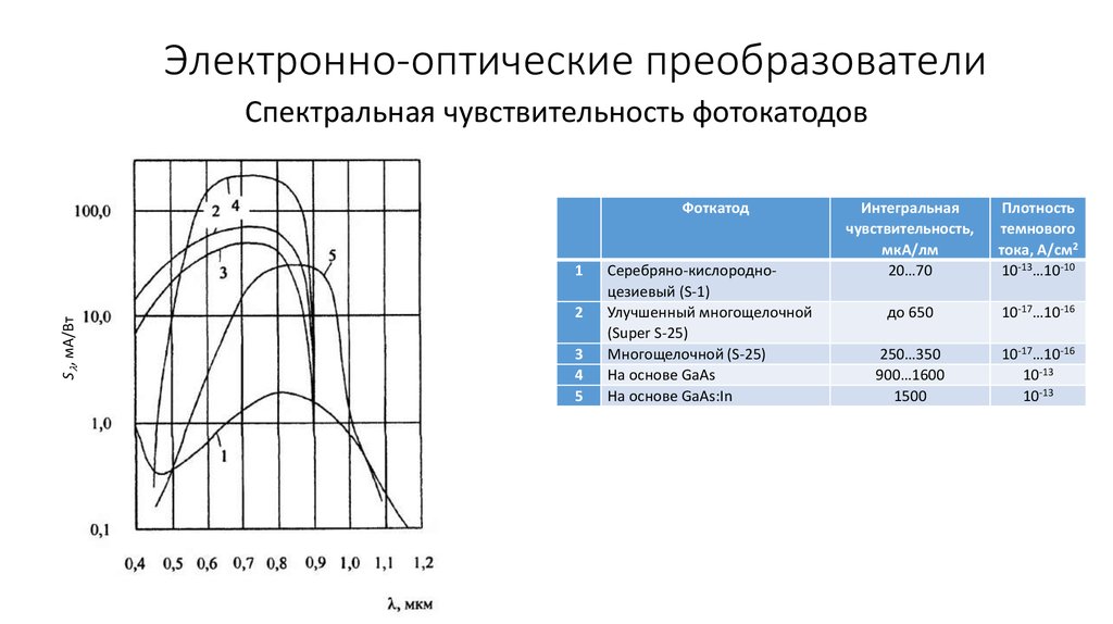 Электронно-оптические преобразователиСпектральная чувствительность фотокатодов