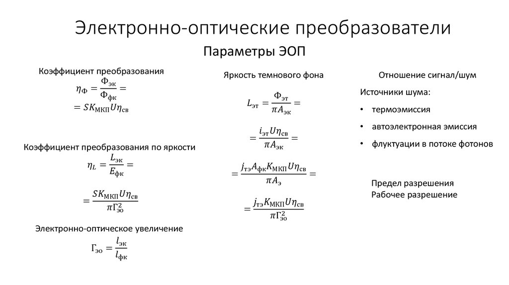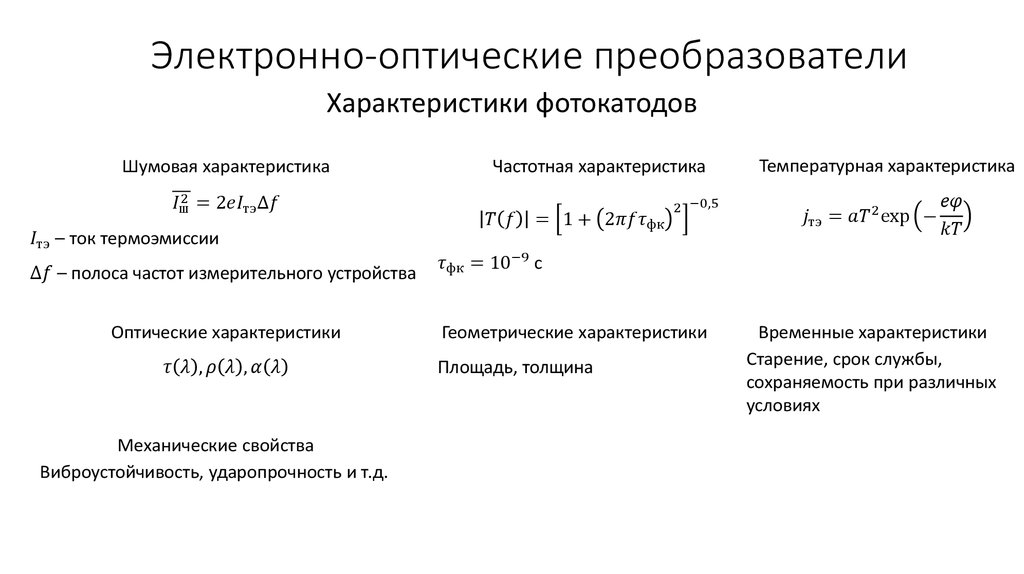 Электронно-оптические преобразователиХарактеристики фотокатодов