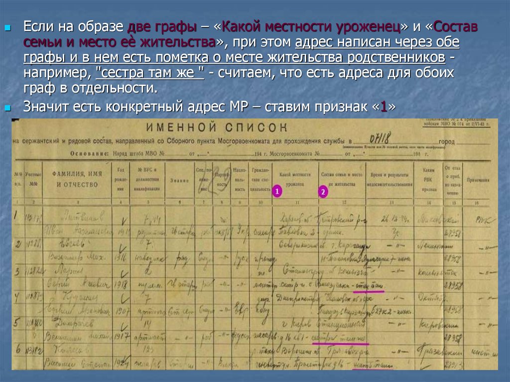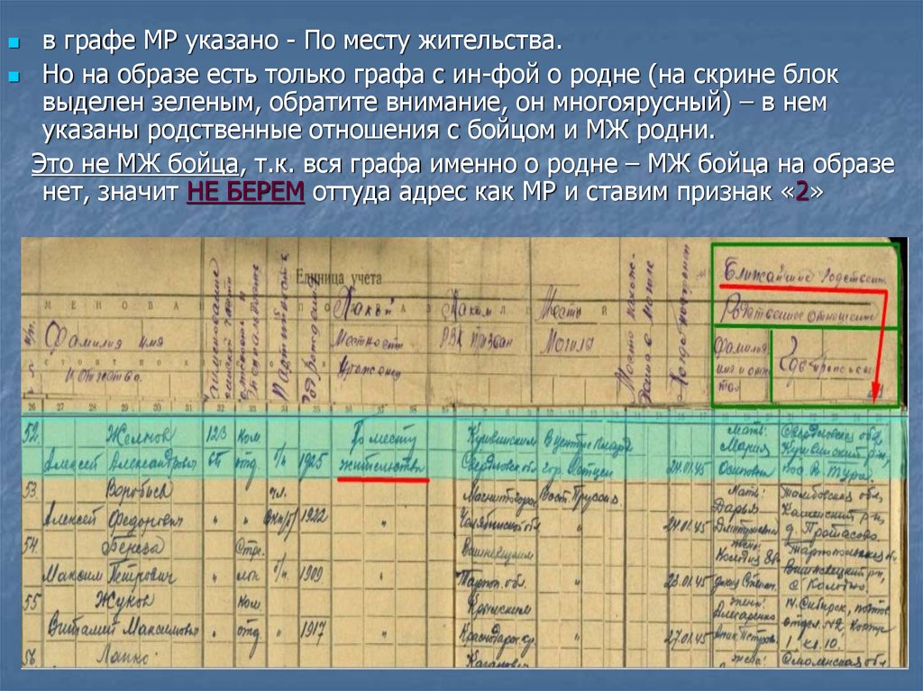 графы и в нем есть пометка о месте жительства родственников например, "сестра там же " - считаем, что есть адреса для обоих