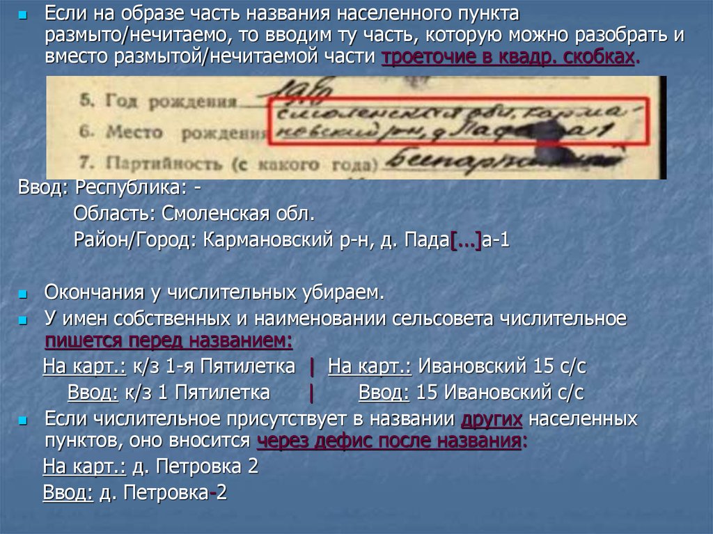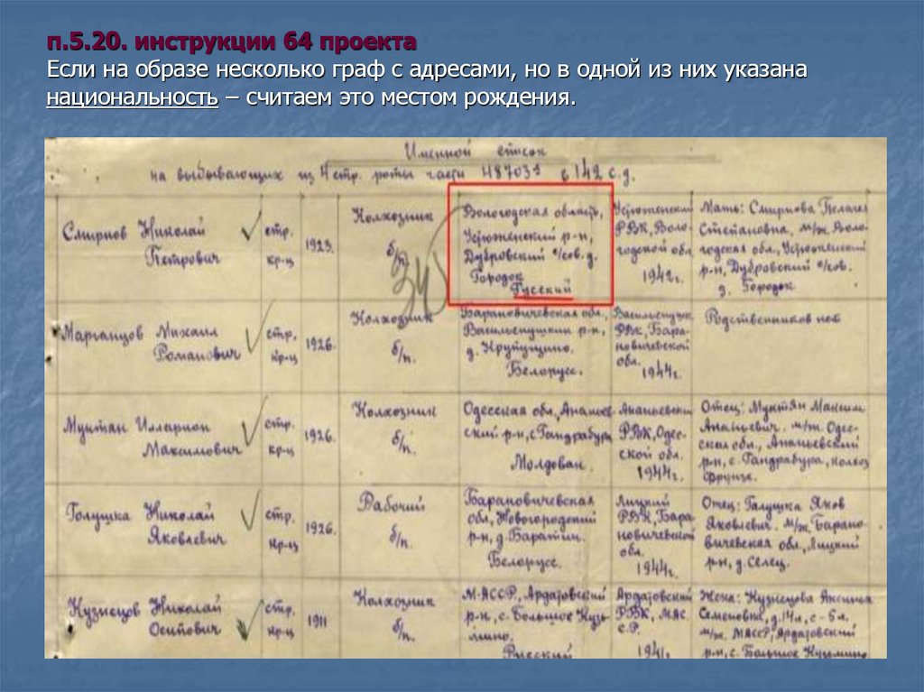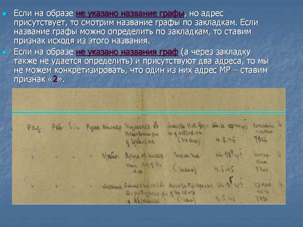 п.5.20. инструкции 64 проектаЕсли на образе несколько граф с адресами, но в одной из них указана